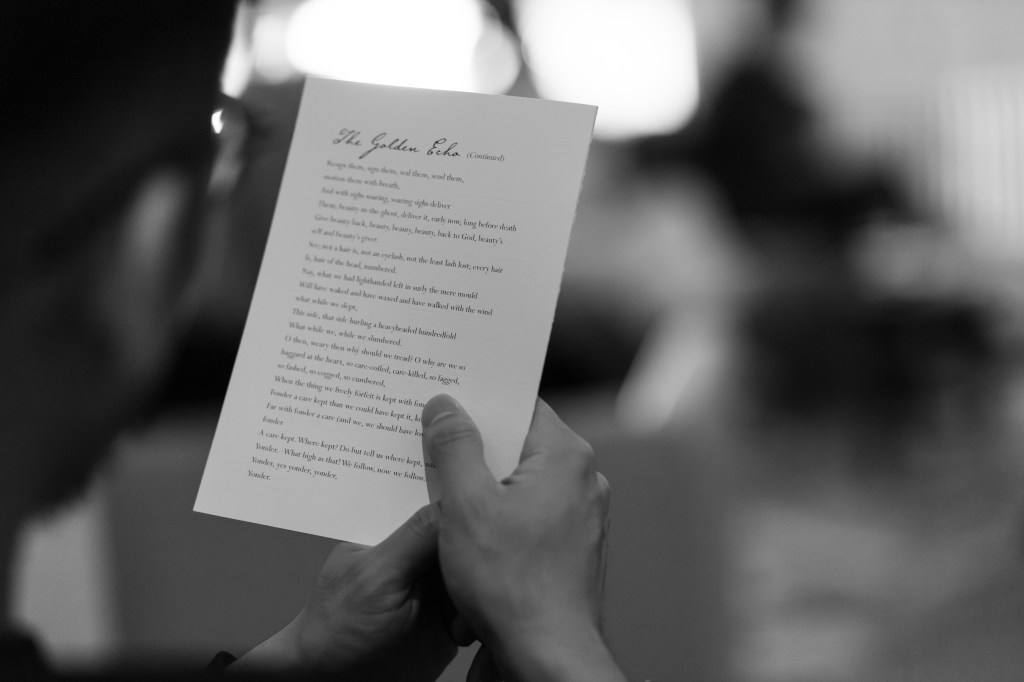 An exploration, immersion and collective evening on Gerard Manley Hopkins’ The Leaden Echo and The Golden Echo. A private event for 30 people in the heart of Edinburgh, produced and hosted by N. L. Chaundler and Stuart Delves.